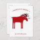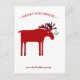 Merry Kiss Moose funny red and white Christmas holiday card featuring a whimsical moose or elk with a bunch of mistletoe tied to his antler, hoping for a cheeky kiss. Original art by Nic Squirrell. Change or remove the message and from text to customise.