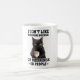 A grumpy black cat with a cup of coffee, and a funny saying: I don't like morning people, or mornings, or people.