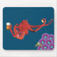 Red octopus drinking beer , underwater plants, sea snails, custom background colour mouse pad.