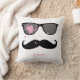 Trendy moustache and sunglasses in disguise graphic art with a pink paint splatter. Fun black moustache and hipster retro sunglasses in disguise with a mod pink and black stripes pattern on the back. Fun decorative throw pillow perfect for any room as an home decor accent pillow. Whether you are looking for a bold art to finish your home decor look or just want to give a gag gift to your friends, this incognito shades and moustache humour pillow will be perfect. MovieFun©