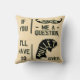 The funny, classic meme humour "I moustache you a question" gets taken to a new level with this hilarious pun throw pillow. "If you moustache me a question," it says, "I'll have to mullet over." The pillow has a picture of a disembodied moustache and mullet hair on a parchment-coloured background. Enjoy this cheesy, fun design that's all business in the front and party in the back.