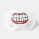Hilariously cute design makes a fun pacifier! Design features a graphic of a big open mouth. lips and teeth! this cute design makes baby look like he or she has a mouth full of teeth when the Funny Mouth and Teeth Pacifier is in their mouth.