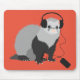 Customisable fun ferret mousepad for a music lover who also loves ferrets. This musical ferret mousepad features a vector illustration of a cute fluffy ferret wearing big headphones and listening to its favourite songs on its own phone. This fun design will also make a great gift for a musician who has a pet ferret.