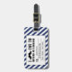 FUNNY MUSTACHE LUGGAGE TAG. BLACK MUSTACHE WITH BLUE AND WHITE STRIPES PATTERN. "I MUSTACHE YOU TO RETURN MY LUGGAGE". MOVIEFUN© For other colours of moustache or background stripes pattern please contact store.