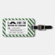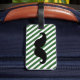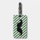 STYLISH, FUNNY MUSTACHE LUGGAGE TAG. BLACK MUSTACHE WITH GREEN AND WHITE STRIPES PATTERN. "I MUSTACHE YOU TO RETURN MY LUGGAGE". MOVIEFUN© For other colours of moustache or background stripes pattern please contact store.
