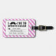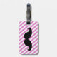 FUNNY MUSTACHE LUGGAGE TAG. BLACK MUSTACHE WITH PINK AND WHITE STRIPES PATTERN. "I MUSTACHE YOU TO RETURN MY LUGGAGE". MOVIEFUN© For other colours of moustache or background stripes pattern please contact store.