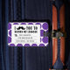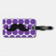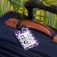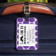 STYLISH, FUNNY, RETRO MUSTACHE LUGGAGE TAG. BLACK MUSTACHE WITH PURPLE AND WHITE POLKA DOT PATTERN. "I MUSTACHE YOU TO RETURN MY LUGGAGE". MOVIEFUN© A fun gift for her. For other colours of moustache or background polka dots pattern please contact designer.