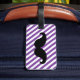 STYLISH, FUNNY MUSTACHE LUGGAGE TAG. BLACK MUSTACHE WITH PURPLE AND WHITE STRIPES PATTERN. "I MUSTACHE YOU TO RETURN MY LUGGAGE". MOVIEFUN© For other colours of moustache or background stripes pattern please contact store.