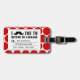 STYLISH, FUNNY, RETRO MUSTACHE LUGGAGE TAG. BLACK MUSTACHE WITH RED AND WHITE POLKA DOT PATTERN. "I MUSTACHE YOU TO RETURN MY LUGGAGE". MOVIEFUN© A fun gift for her. For other colours of moustache or background polka dots pattern please contact designer.