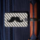 FUNNY MUSTACHE LUGGAGE TAG. BLACK MUSTACHE WITH TAUPE AND WHITE STRIPES PATTERN. "I MUSTACHE YOU TO RETURN MY LUGGAGE". MOVIEFUN© For other colours of moustache or background stripes pattern please contact store.