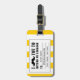 FUNNY MUSTACHE LUGGAGE TAG. BLACK MUSTACHE WITH BOLD MODERN YELLOW AND WHITE STRIPES PATTERN. "I MUSTACHE YOU TO RETURN MY LUGGAGE". MOVIEFUN© For other colours of moustache or background stripes pattern please contact store.