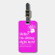 Hello?! I'm sitting right here! funny luggage tag. This bright, neon pink luggage tag will definitely help you find your luggage. Add your contact information to the back of the tag.