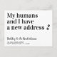 My Human And I Have A New Address! Let your best friend announce your move with this cute and funny pet moving announcement card.