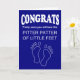 Soon you will hear the pitter patter of little feet, says the outside of this funny congratulations new baby greeting card. The inside completes the poem with the words "but first comes the bitter matter of little sleep." Mum and dad will get a kick of this humourous prediction of their toddler keeping them awake at night.