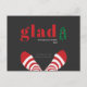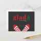 These 4.25" x 5.6" flat holiday or New Year postcards feature the word "glad" in big bold letters with a little hand drawn Christmas tree and funny red and white striped socks with a placeholder for the family name and year. There is a *note...*Decided to switch things up this year.