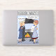 A custom cut sticker with a funny cartoon about New Year's Resolution. The images, background and text can be personalised. Original artwork by DBcartoons.
