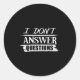 Funny No Questions I Don't Answer Questions Classic Round Sticker