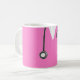 Nurse appreciation or graduation keepsake gift mug, featuring pink hospital scrubs and funny Swiss Army knife. Edit text to add name.