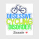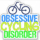 I'm obsessed with riding bicycles. I have obsessive cycling disorder sticker in neon blue, yellow, and green. A cool cyclist humour gift.