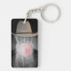 Funny Old Guy Blowing Bubble Gum and Heart Key Ring