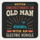 Funny Old Man with Electric Vehicle EV Retro Gift Square Sticker