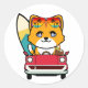 Funny orange cat is driving to the beach classic round sticker