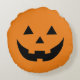 Funny orange Jack o lantern pumpkin face Halloween Round Cushion