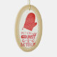 Cute oven mitt with funny "batter up" message on this culinary Christmas ornament for your or baking or sweets themed tree or for gifting your favourite baker or pastry chef.
