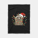Funny Overstimulated But Festive Raccoon Christmas Fleece Blanket