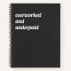 A funny, humourous (and probably true!) notebook with a dark grey background and modern, bold white typography that reads "Overworked and underpaid". A little subtle hint for your workplace perhaps?