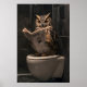 Funny Owl Reading Newspaper on Toilet, Bathroom Poster