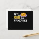 Will run for pancakes novelty design features stacks of pancakes and funny quote. Perfect to wear during a pancake run