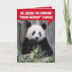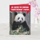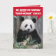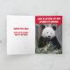A photo of a cute panda nibbling on bamboo. She's saying, "Me, before the pandemic "panda-monium" started". Inside the same panda has no black fur around her eyes (or eye makeup). Her eyes look like 2 pee holes in the snow. She's saying, "Look at me now. No need to wear eye makeup." Also there's a note that says, "Sending you a smile. Hope you're staying healthy and sane." A fun card to send friends and family while we're sheltering at home.
