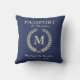 Funny Passport Look Laurel Wreath Monogram Name Cushion