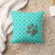 Funny Paw Print on Aqua Colour Quatrefoil Cushion
