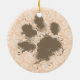 Funny Paw Print on Light Apricot, Peach Damask Ceramic Tree Decoration