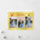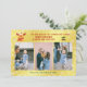 Artistic, elegant Christmas card with a cute image of Rudolph the Reindeer and three vertical family photos, the texts "'Tis the Season for Pawsitive Vibes!" + "MERRY CHRISTMAS & HAPPY NEW YEAR 202Y," along with two bells with a sprig of holly + the names of family members and their pet dog for you to personalise. With a light modern sprinkle of white and silver snowflakes on a golden background on the front.