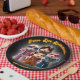 If you believe that disco ain't dead, then these paper plates, which feature AI-generated artwork of a hamster musical supergroup dressed up in funky '60s and '70s threads, giving the peace sign to the accompaniment of the quirky sentiment styled in a retro font, "Peace. Love. Bellbottoms." and the hashtag "#discoaintdead" are great for throwing '60s-themed parties!