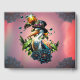 Funny pelican with steampunk hat and tropical fantasy plants. The combination of traditional steampunk style and exotic surroundings gives the picture a unique and fascinating atmosphere.