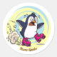 Funny Penguin on Roller Skates Classic Round Sticker