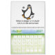 Funny Penguin Calendar. Each page has a different graphic image / cartoon art drawing of penguins with funny sayings / quips. Guaranteed to put a smile on your face and make you laugh each month of the year. A Penguin lover's calendar that will bring joy all year round. Add the year that you want to use it for.