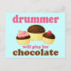 Drummer - Will Play For Chocolate design has cupcake logo and funny drummer slogan.  Great gift or stocking stuffer for percussionists and drumline members.