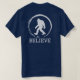 Funny Personalised Big Foot T-Shirt. Big foot with the word Believe. Design on back of shirt.