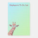 Funny Personalised Giraffe To Do List on an ombre blue green background with a red pink fun font for custom text. Great hostess gift, or gift for any giraffe lover. The receiver of this post it note will smile and think of you each time them use one! Click on personalise this above to change out the text to whatever works for you! Artwork/Photography by Melanie Fine ©