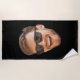 Funny personalised beach towel with a large men's photo printed on it. Upload a regular picture or use any mobile app or editing program to create the cut-out and upload a transparent png file. The background colour is editable by clicking the button to customise the design.