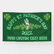 A funny personalised Irish St Patrick's day design with a fun skull wearing a silly Irish hat lucky shamrock clovers and personalised custom name, drinking team or text templates to easily create your own unique modern St pats day design for your green beer day shenanigans celebrations or party. Easily customise the green background colour.