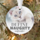 Personalised "Define Naughty" Cat Photo Ornament. Add a touch of humour to your holiday decor with this funny cat ornament, perfect for those with a mischievous kitten or sassy kitty. The front features the playful text "Define Naughty" along with your cat's name, capturing your feline's cheeky personality. There's also space for a photo of your cat to add a personal touch. The back showcases a paw print design with a heart cutout in the centre, making it extra special. Both the font colour and paw print can be customised to suit your style. This humourous keepsake is perfect for cat lovers, making it a fun gift for the holidays, birthdays, or just because. A great way to showcase your kitten's naughty side, whether on the Christmas tree or year-round in a special spot!