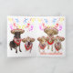 Funny customisable card with one funny cat and some dogs in sombreros. On the front you can customise the text, changing fonts, font size and colour. You could use a background colour. You have to customise this card to delete the numbers you don't need. Click edit, then look on the right for the front page images and click on each candle number you want to delete and then click on remove. This card might also be funny for an adult. "Jimmy es 49 hoy." On the inside are dogs in sombreros with a festive "Feliz cumpleanos!", which can also be edited. The piñata is from some photo objects.
