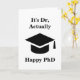 Celebrate the culmination of years of hard work and dedication with our Funny PhD Graduation Cards! Perfect for adding a touch of humour to the momentous occasion, these cards are designed to bring smiles and laughter to new PhD graduates. Each card features clever jokes, witty illustrations, and light-hearted puns that capture the unique journey of earning a doctorate. Whether you're congratulating a friend, family member, or colleague, our cards are a delightful way to acknowledge their achievement while sharing in the joy of their success. Give the gift of laughter and commemorate this extraordinary milestone with a card they'll cherish forever!