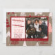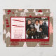 Third year is a charm, optimism and hope for 2022 custom photo card template with a cute minimalist primitive cardinal red, rose coral, and blush pink sweet christmas tree doodles seamless pattern on natural tan / taupe.